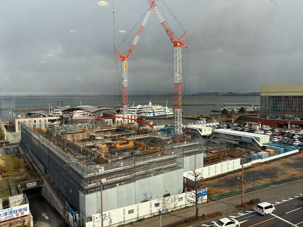 OVERVIEW いつどこにできるの? 開館までのスケジュール 新しい琵琶湖文化館は、2027年12月琵琶湖のほとり・大津市浜大津に開館します。 2025年2月に着工記念式典を行い、2027年3月に竣工予定。枯らし期間*を経て、2027年12月に開館を迎えます。 *枯らし期間:新築の建築資材等から出るガスや水分を放散させ、安心安全に文化財の収蔵展示環境を整える期間。 建設地:写真左下 (公社)びわこビジターズビューロー アクセス <建設地>滋賀県大津市浜大津五丁目1-1の一部、浜町2-1の一部京阪石山坂本線「びわ湖浜大津駅」から徒歩約3分(大津港旅客ターミナルすぐ) JR琵琶湖線「大津駅」から徒歩約15分 <京都方面> <大阪方面> 大阪駅から大津駅までJR京都線新快速で約40分びわこ浜大津駅までJR大津京駅で京阪線乗換で約60分 <東京・名古屋方面> 東海道新幹線にて京都駅乗換 <福井方面> 敦賀駅から大津駅までJR特急で京都駅乗換・琵琶湖線で約70分またはJR特急で米原駅乗換、琵琶湖線で約80分びわこ浜大津駅までJR特急で京都駅乗換琵琶湖線山科駅または膳所駅にて京阪線に乗換 <車をご利用の場合> 名神高速道路大津ICより約10分 建設現場の定点観測 2025.12.26 2025.11.28 2025.10.31 2025.9.30 2025.8.29 2025.7.31 2025.6.30 2025.5.30 2025.4.30 2025.3.31 2025.2.28 2025.2.20 着工記念式典 整備事業の進捗 2026年 2.18 新しい見出しを追加します。 2025年 12.26 フネノキミチの工事が進行しています。 ※コンクリート工事の最大の難所 11.28 2階部分のコンクリート工事が進行しています。 08.29 1階床の工事が始まります。 07.31 コンクリート打設工事が進行し、免振装置の設置を進めています。 06.30 基礎躯体工事が進行しています。 05.30 杭打ちが完了し、掘削工事が進行しています。 04.30 杭(くい)打ち工事が進行しています。 03.28 大きなクローラークレーンを導入しました。 02.20 着工記念式典を行いました。 どんな施設なの? どんな建物なの?